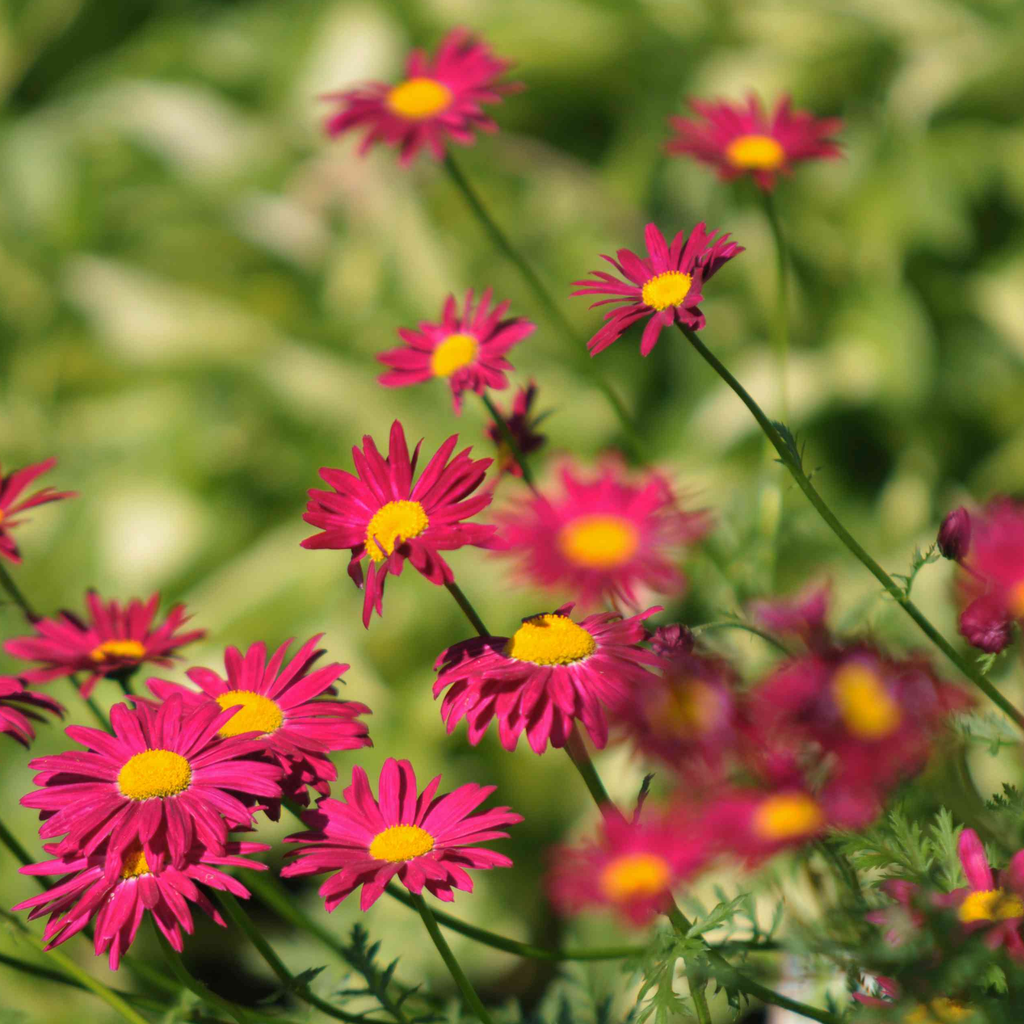 Pyrethrum Daisy – 50–60 seeds | Cheerful daisies in pink, red, white, and rose; strong stems make them excellent for cutting and transitioning to double blooms in later seasons.